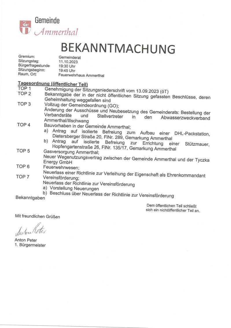 Bekanntmachung 11.10.2023
